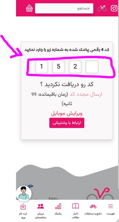 3- کد 4 رقمی پیامک شده را وارد کنید